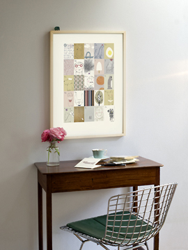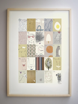 A delightful combination of original pen & ink drawings, potato prints, montage and painting make this A-Z poster a favourite with little ones and not so little ones alike.